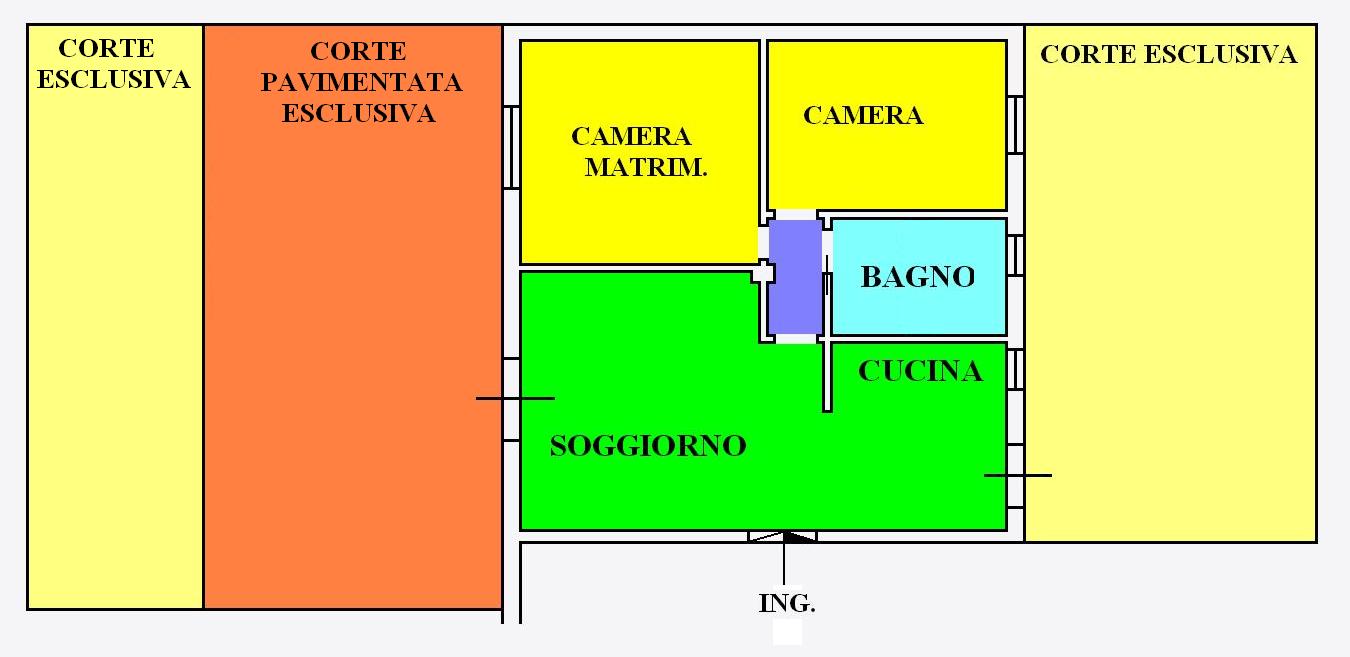 Piano terra con doppio ingresso: ingresso indipendente dalla corte privata e accesso anche dall’area comune.