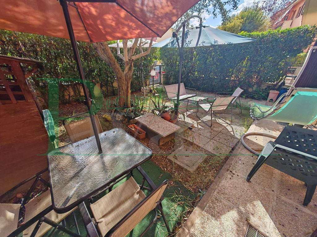 Corte privata di 124 mq, parte verde e parte pavimentata, perfetta per momenti all’aperto, barbecue e relax.