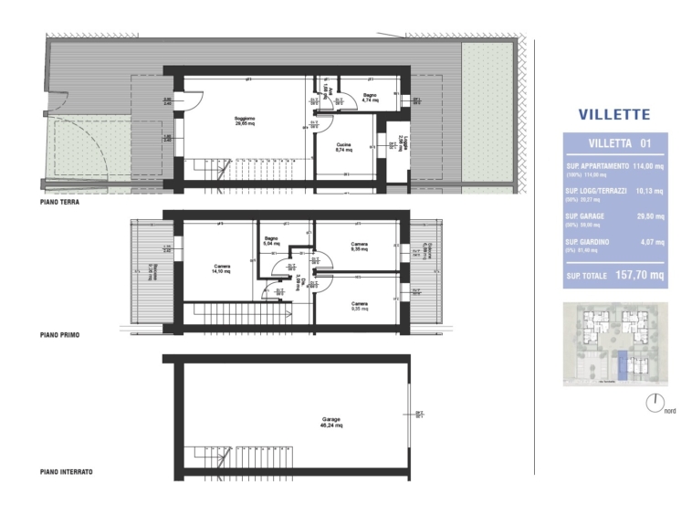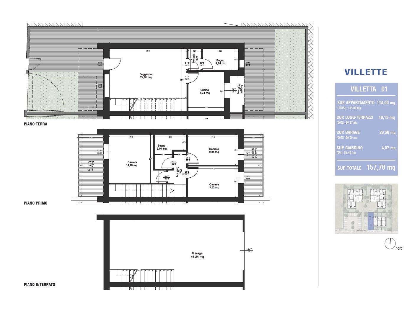Casa a Schiera mq 114 – Logge/Balconi mq20,27 – Garage mq.59 – Giardino mq.81,40