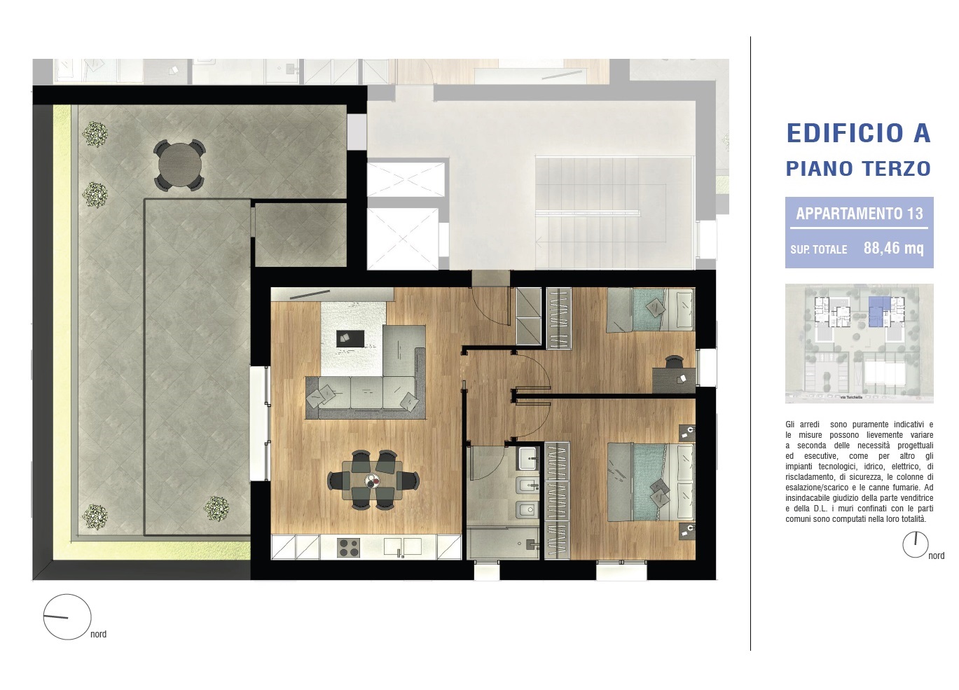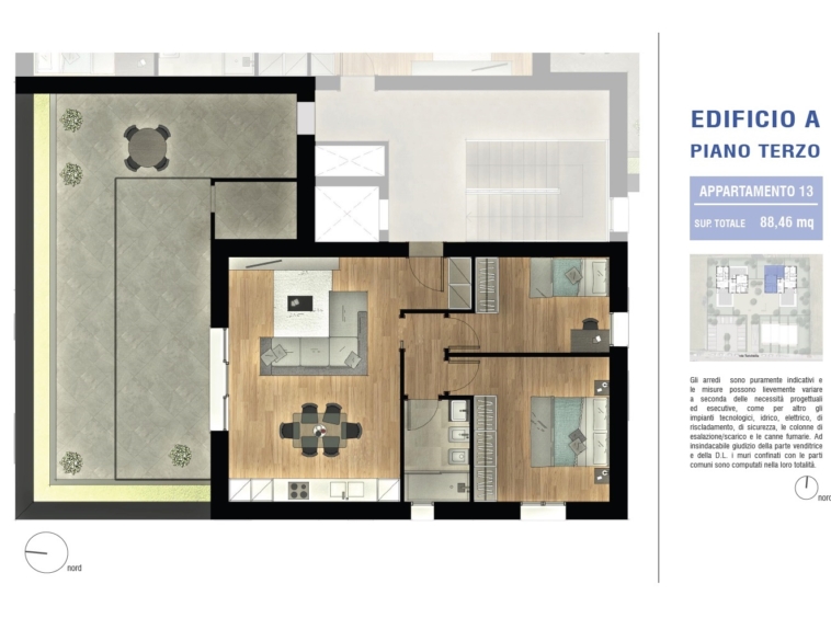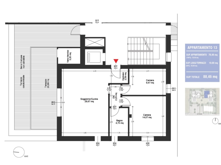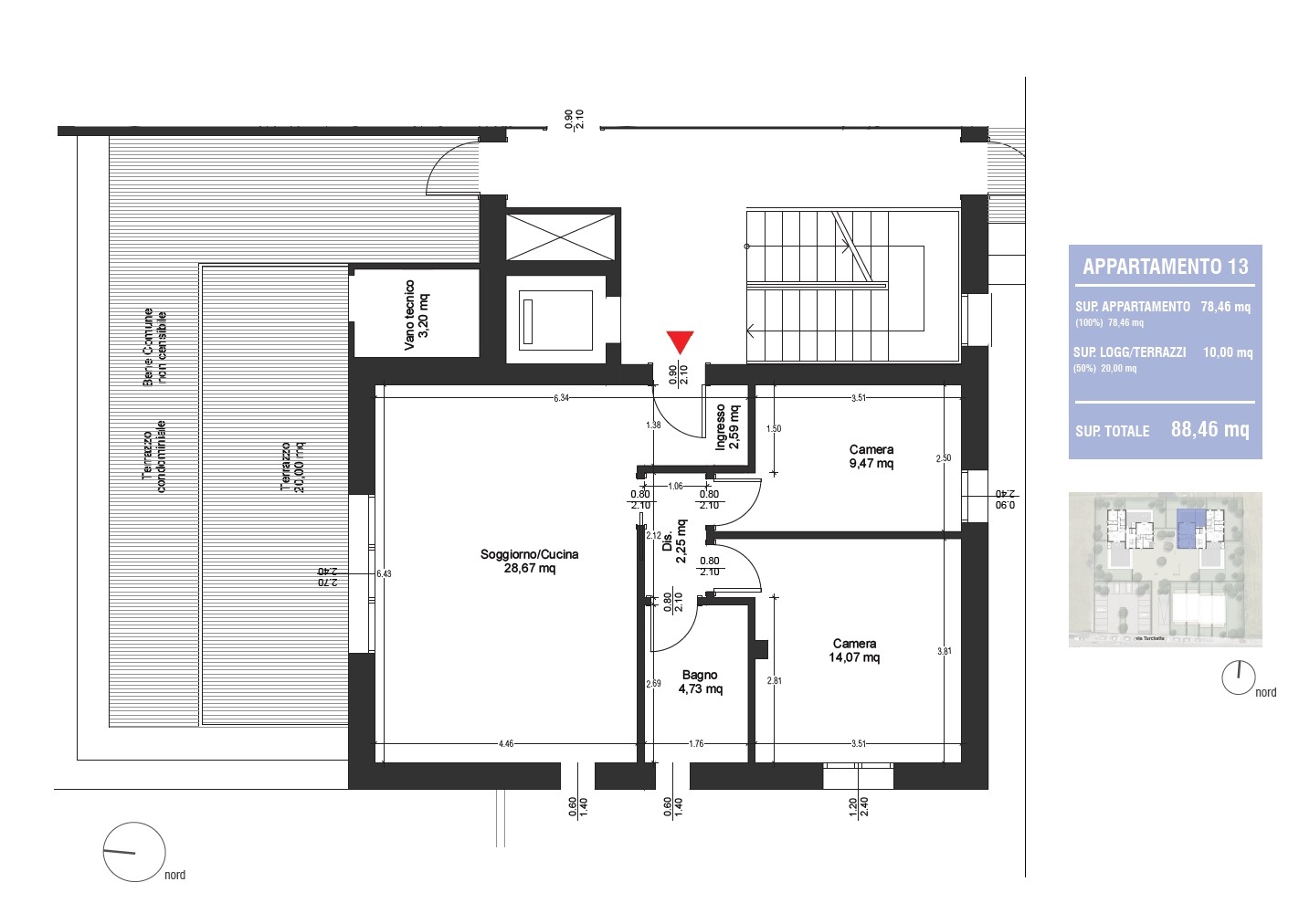 Attico 3° P mq 78,46 – Terrazzo mq 20.